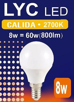 Pack de 5 uds ESFERICA LED 8w E-14 2700K