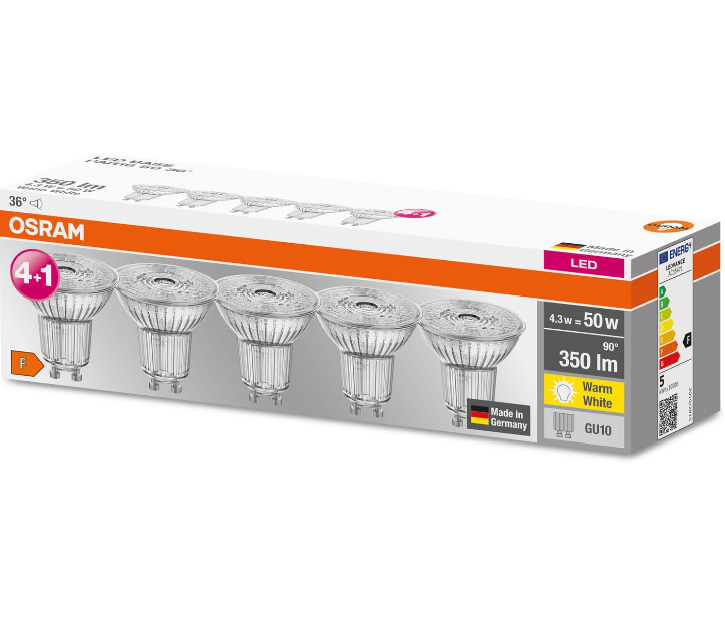 pack de 15 uds GU10 LED OSRAM STAR 4.3w 827